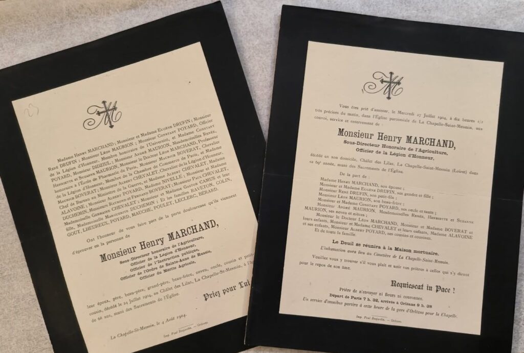 Les faire-parts de décès sont une source particulièrement fascinante en généalogie car ils offrent une véritable cartographie des familles. Parfois, certains peuvent faire surface de manière inattendue, comme celui d’Henry Marchand, décédé en 1904, récemment apparu sur eBay.